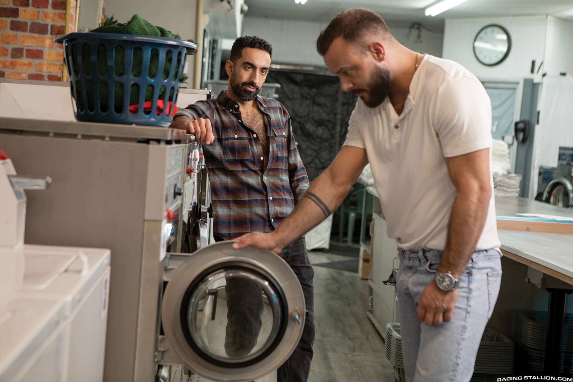 Gay men fucking in the laundry