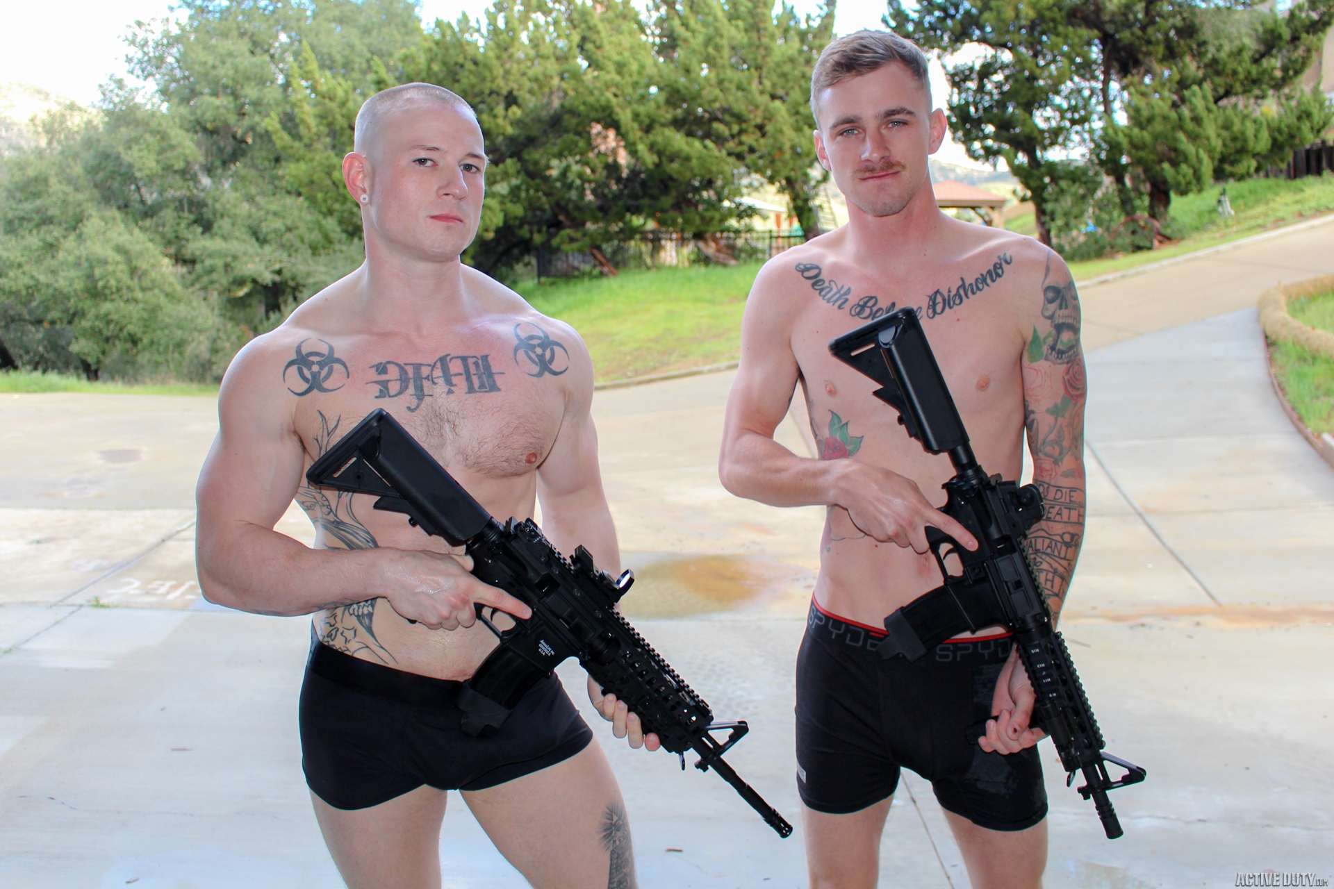 Guys with guns sucking and fucking