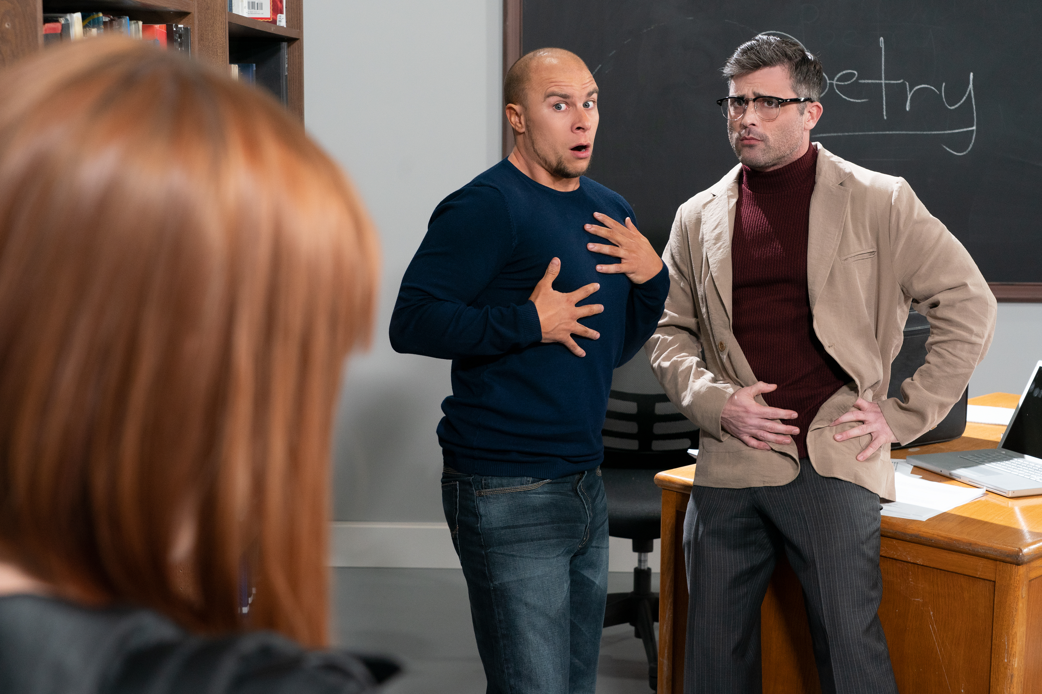 Two men and a woman boning